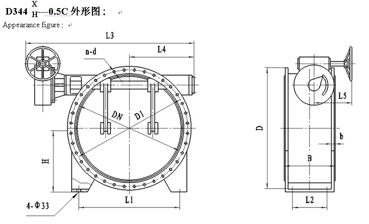 The valve has the features of compact structure, endurance, little in the lost of flow resistance, good seal, reliable self-locking, flexible operation, definite direction, easy to maintenance and long life. The seal of driving shaft is out seal, which is easy to be adjusted and changed without stopping, so the out leakage is avoided effectively. All kinds of seal type can suit different medium. It is especially suitable in the condition of adjusting, cutting off and self-protecting quickly. The valve is used with worm gear driving device to form a complete set to realize open-close operation. It is the ideal equipment of adjusting flow.