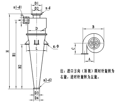 In order to make it equipped with air elevating, we design this whirlwind combined material and gas separator. The device is installed on the end of the pipe of air elevating to separate the material and transport air. Material is discharged from the bottom of its cone, and air is let out from the top. That can separate the material from air effectively. It can be used separately or others.